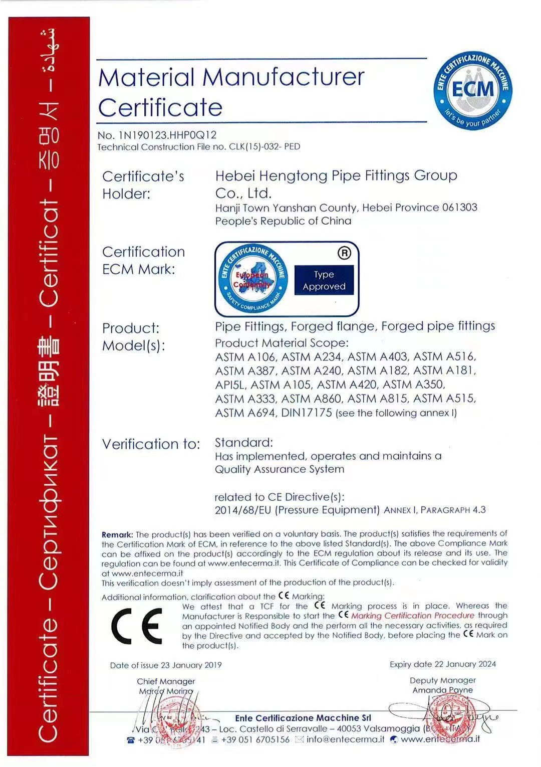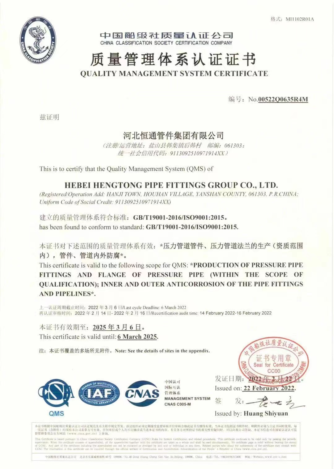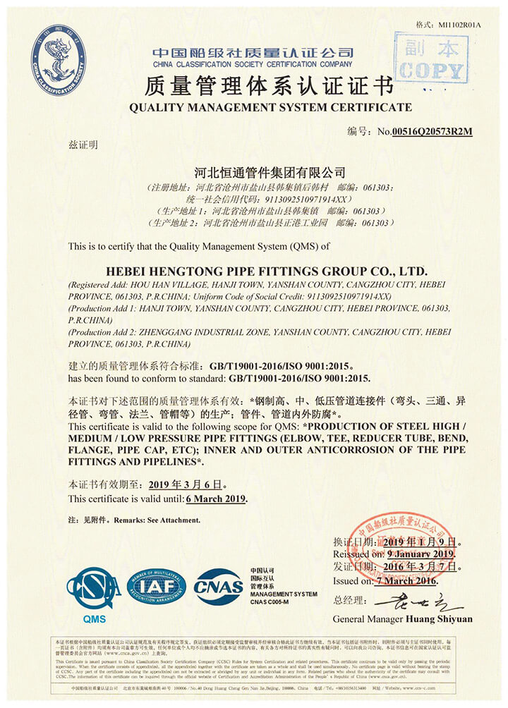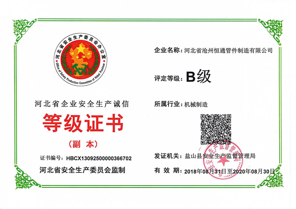 河北恒通管件集團有限公司是一家集科研開發、生產經營、技術服務于一體的鋼質管件專業制造企業,是中國石油、中國石化,一級供應網絡成員單位。公司擁有員工286人,占地面積20萬平方米,年產管件15000噸。 本公司技術力量雄厚、生產設備先進、檢測手段完備。具有國內先進的冷擠壓三通、四通、中頻感應推制彎頭。中頻感應煨制彎管等生產線8條和200-2000t液壓機等管件生產設備75臺(套),設有國家檢驗協會認定的管件檢驗機構。本公司于1998年和2002年分別通過了iso9001和美國api質量體系認證。  主要產品有無縫彎頭、有縫彎頭、彎管、三通、四通、異徑管、法蘭、承插管件、接管座等高、中、低壓系列管件,主要產品曾獲省科技成果、省優、部優和國家金獎等殊榮,產品暢銷全國,并出口中東、西歐及北美等地區。 公司秉承質量優先、服務至上的經營理念,讓我們高質量的產品架起您我合作的金橋共赴輝煌未來。